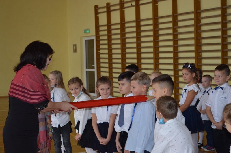 October 12, 2021 in the gymnasium of the Primary School Stefan Żeromski in Strawczyn, the first grades were sworn. It all started with the introduction of the school banner and the solemn singing of the national anthem. There was also a short artistic part with beautiful recitation, vocal and dance performances. However, the most important part of the ceremony was the first graders taking an oath and the appointment by Headmistress Jadwiga Elżbieta Błaszczyk as a first-grade student. At the end, the first graders received small gifts in the form of illustrated spelling dictionaries by Mr. Tadeusz Tkaczyk. Here is a short photo report from this ceremony: